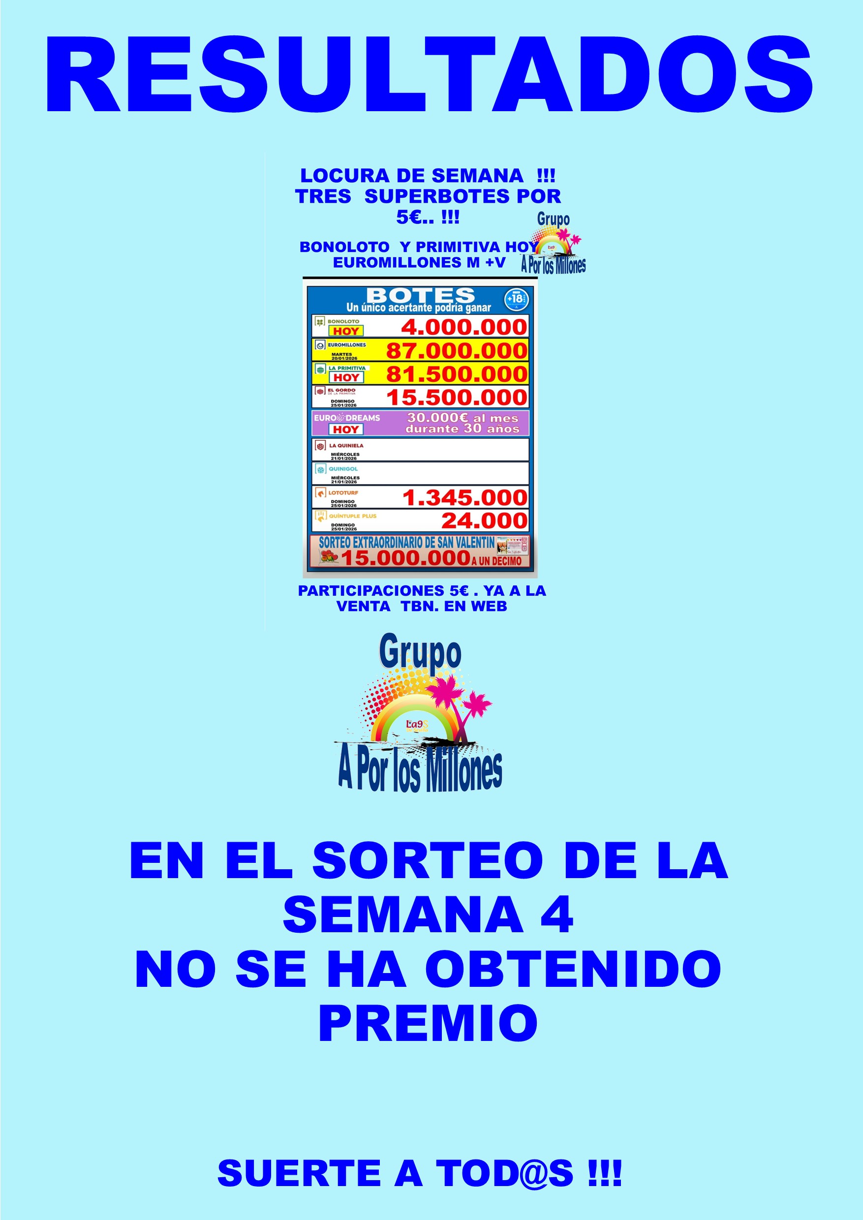 Sorteo extraordinario de san valentÍn 14-02-2026Próximo Bote Millonario:15.000.000€ -