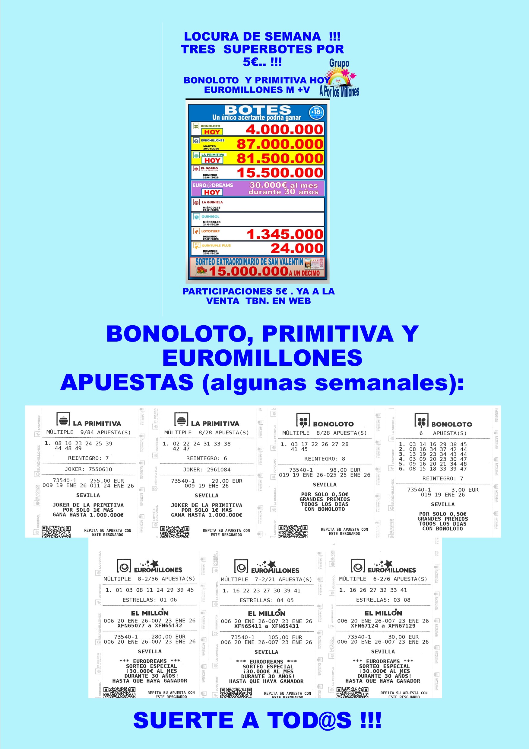 Sorteo del jueves 05-02-2026Próximo Bote Millonario:300.000€