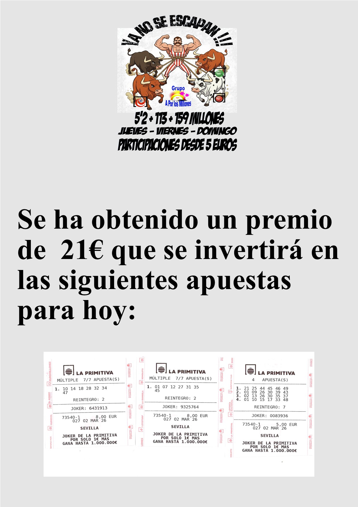 Sorteo del día 07-03-2026Próximo Bote Millonario:0€ -